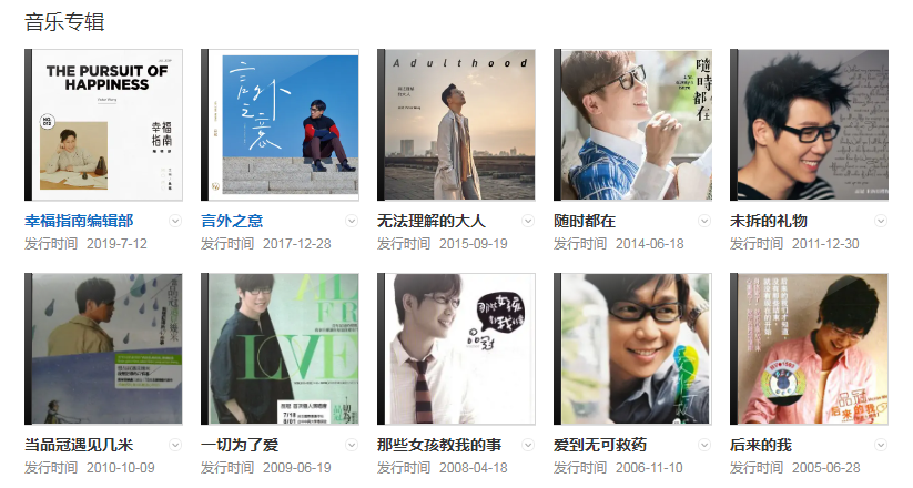 2019年,其演唱的歌曲《幸福指南》獲得音樂先鋒榜三十一載盛典先鋒金曲獎(jiǎng);同年,推出個(gè)人第10張普通話專輯《幸福指南編輯部》。