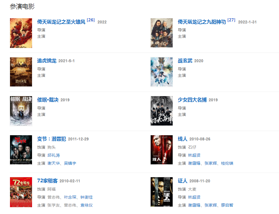 代表作品:《大唐雙龍傳》、《臺球天王》、《野蠻奶奶大戰(zhàn)戈師奶》