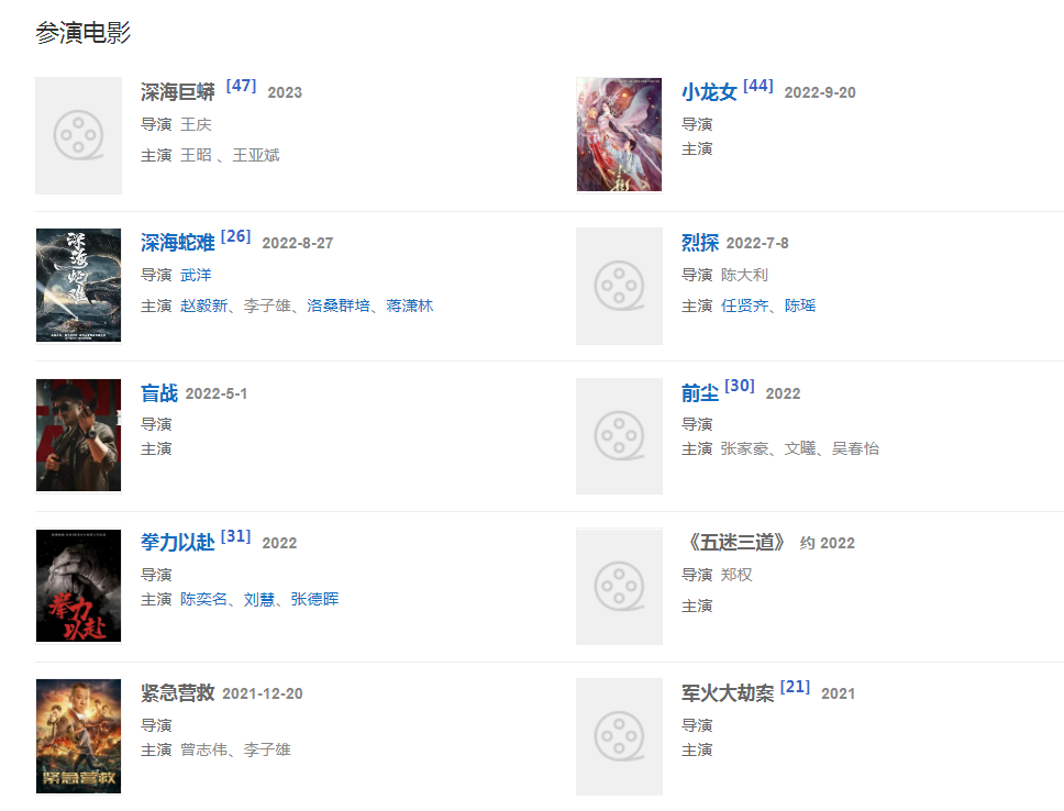 2023年2月19日,領(lǐng)銜主演的緝毒動(dòng)作電影《火線之上》在愛奇藝視頻全網(wǎng)獨(dú)播。4月13日,主演的電視劇《菊花醉》播出。5月6日,參演的電影《獵毒風(fēng)暴》開機(jī)。6月30日,參演的電影《不曾消失的愛》定檔上映。7月18日,參演的電影《木偶驚魂》上映。7月21日,參演的電影《零號(hào)追殺》上線愛奇藝云影院。