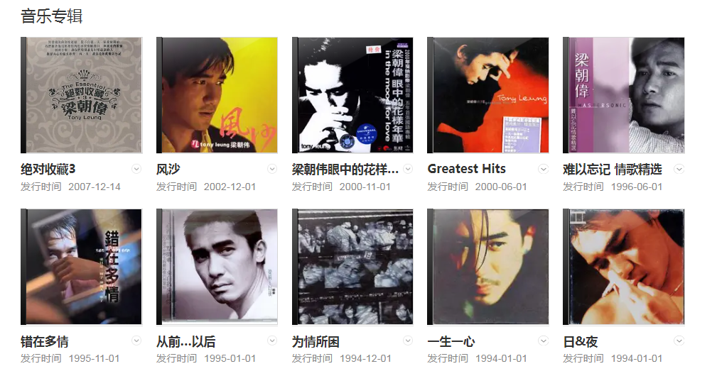 代表作品:花樣年華、無間道、重慶森林、色·戒、悲情城市、春光乍泄、2046、海上花、英雄、赤壁、一代宗師、你是如此難以忘記、一天一點愛戀、為情所困