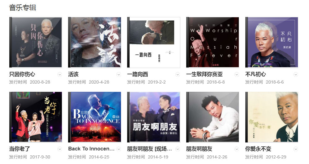 代表作品:你是我的唯一、太傻、等你等到我心痛、愛那么重、但愿、團圓、心酸的情歌、紅塵來去一場夢、不敢讓你等太久、我感覺不到你