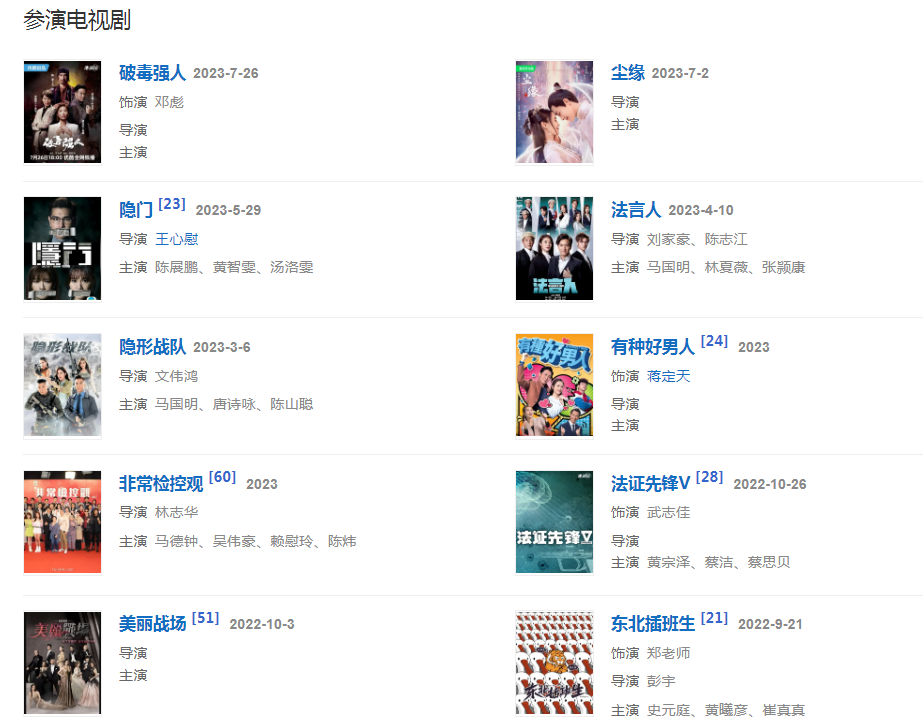 代表作品:天龍八部、保護證人組、刑事偵緝檔案II