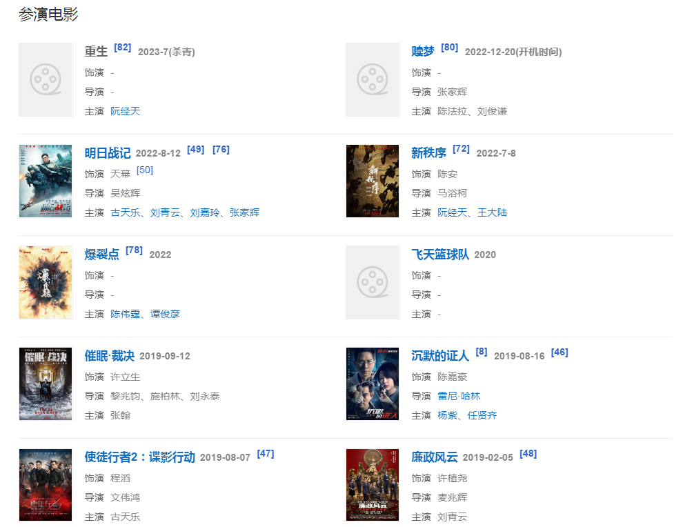 20196月,由張家輝等主演的國產(chǎn)科幻片《末日拯救》正在制作中;87日,與古天樂合作主演的電影《使徒行者2:諜影行動(dòng)》上映;816日,與楊紫、任賢齊等合作主演的電影《沉默的證人》上映;912日,在上映的犯罪動(dòng)作片《催眠·裁決》中飾演陪審團(tuán)成員許立生。